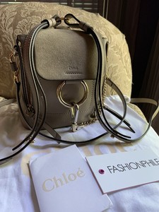 Source: i.ebayimg.com This grey calfskin suede faye mini backpack from chloé features a foldover top with magnetic closure, adjustable shoulder straps, stitching details and a front embossed logo stamp.