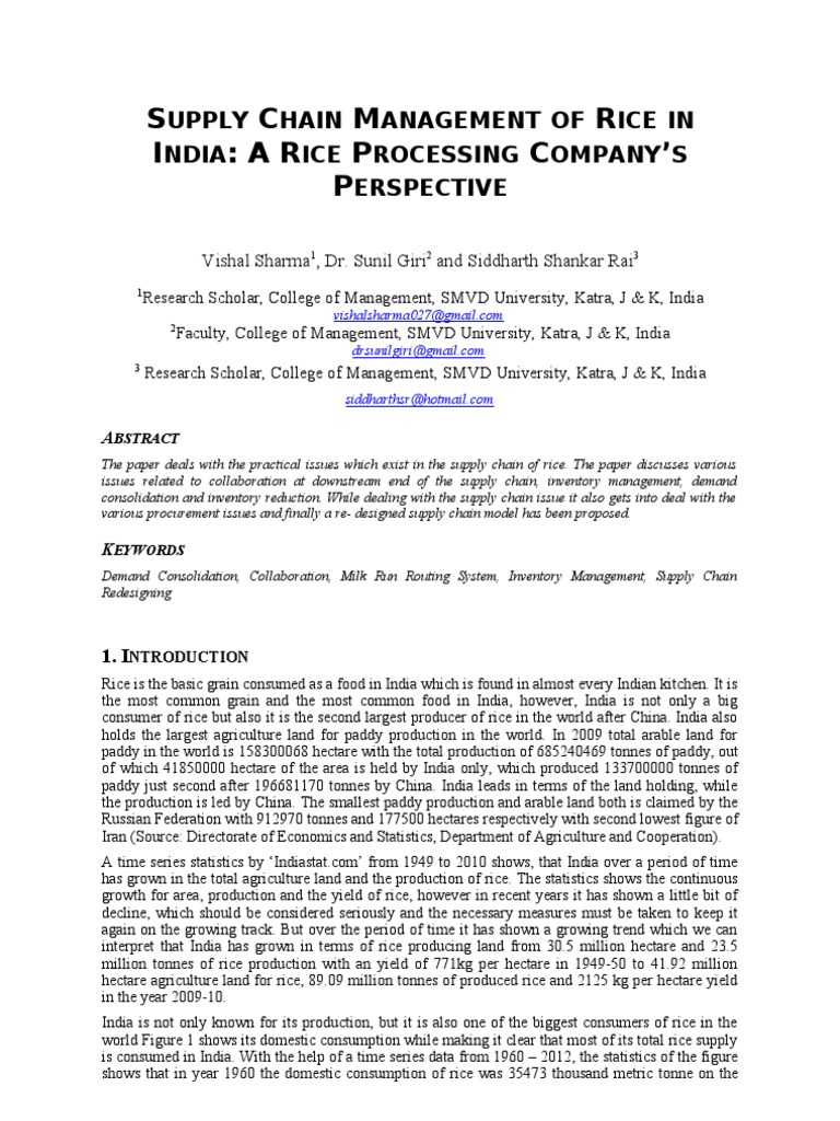 It first appeared in logistics literature in the 1980s, as an inventory management approach with an agriculture supply chain system comprises organizations/cooperatives that are responsible for the production and distribution of.