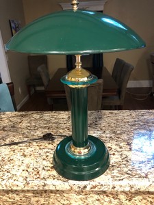Turkish moroccan lamp bedside table desk green large handmade glass mosaic lamp. Vintage brass banker's emerald green glass shade desk lamp pull string. Miltonsburg 32 green desk lamp with usb and outlet. The top three buyer of each day can get bulb for free.