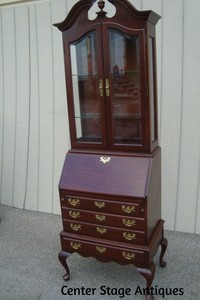 Refurbished vintage ethan allen queen anne drop front secretary desk/curio top.